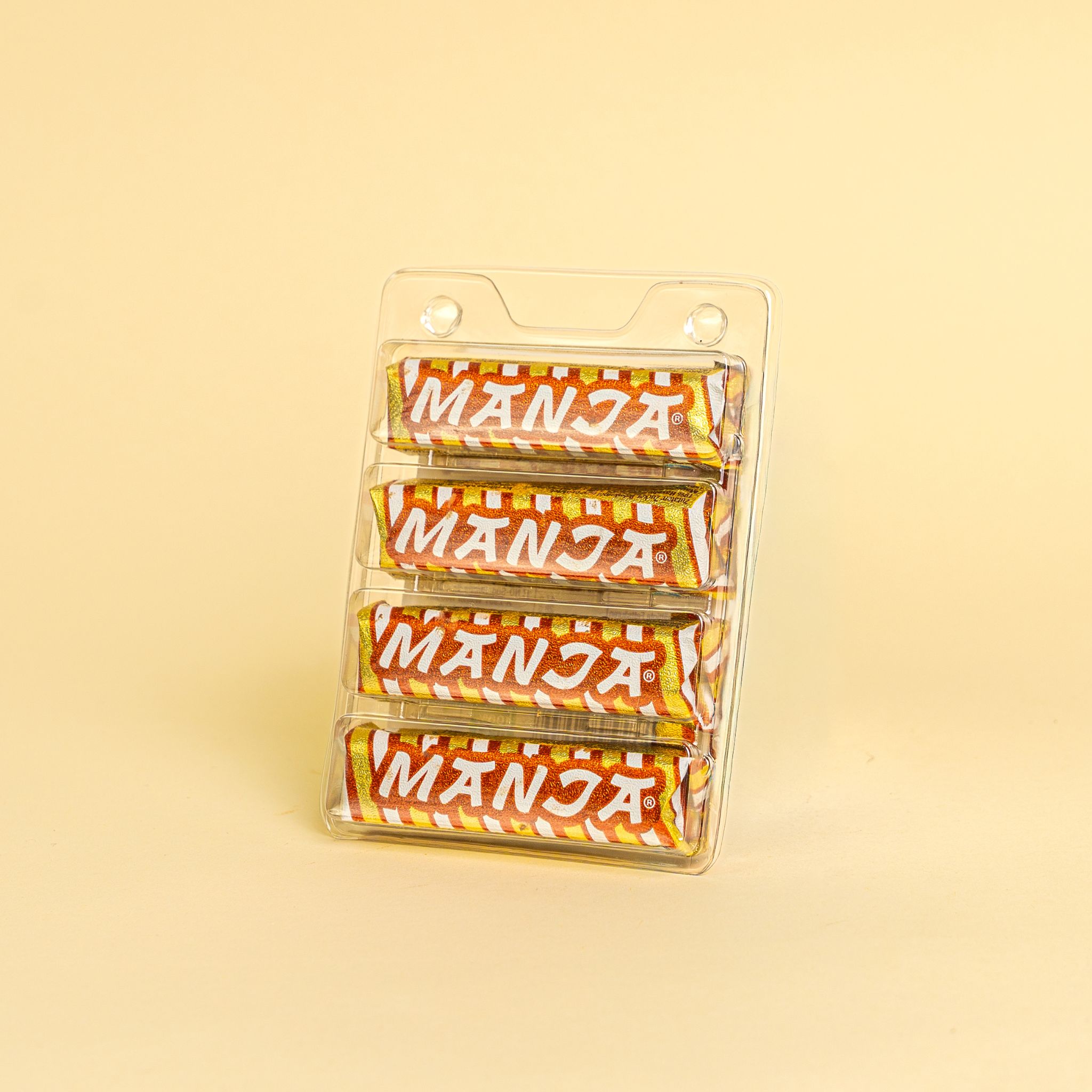 Feinstes „Manja 4er“ Haselnusscreme-Stangerl mit köstlicher Schoko-Glasur. Manja 4er schmilzt unvergesslich zart im Mund – eine Belohnung, die man sich gern öfter gönnt. Lässt Alltagsstress und Hektik vergessen.