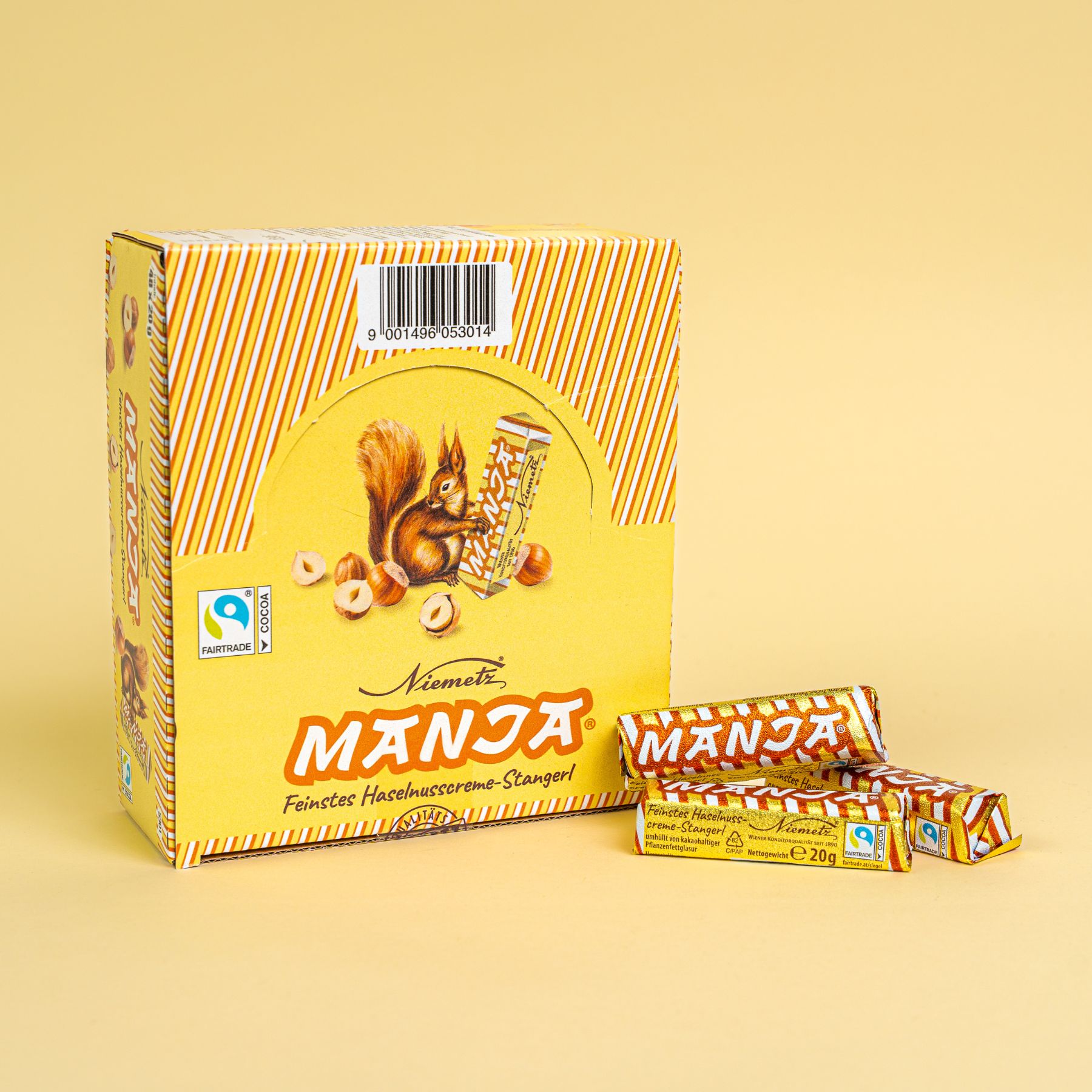 Manja, das feine Haselnusscreme-Stangerl. Seit den 1960er Jahren nach Originalrezeptur hergestellt und fixer Bestandteil jeder Naschlade in Österreich.
