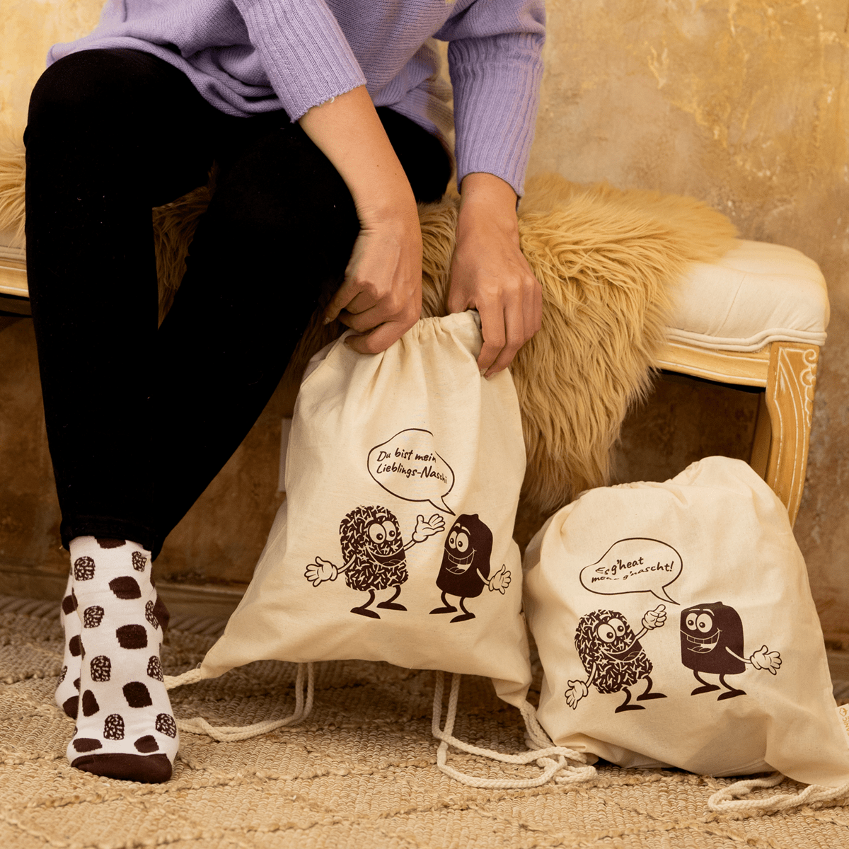 Niemetz Schwedenbomben Baumwoll-Rucksack – Es g’heat mehr g’nascht