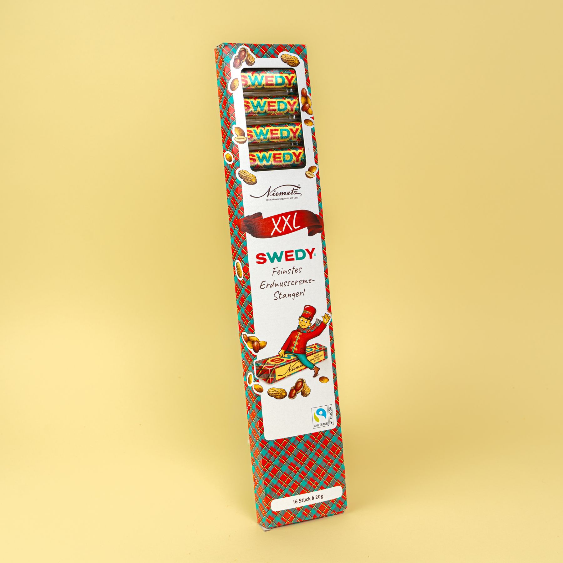 Verwöhnen Sie sich und Ihre Liebsten mit unserer neuen „Swedy XXL“ Packung. Knackige Erdnuss trifft auf zarte Schoko-Glasur. Ein Genuss das ganze Jahr über. Unsere Erdnusscreme-Stangerl Swedy XXL werden nach der bewährten Original-Rezeptur und mit viel Liebe und Sorgfalt sowie 100% Fairtrade Kakao in Österreich hergestellt. Entdecken Sie hier auch unser beliebtes Haselnusscreme-Stangerl Manja.